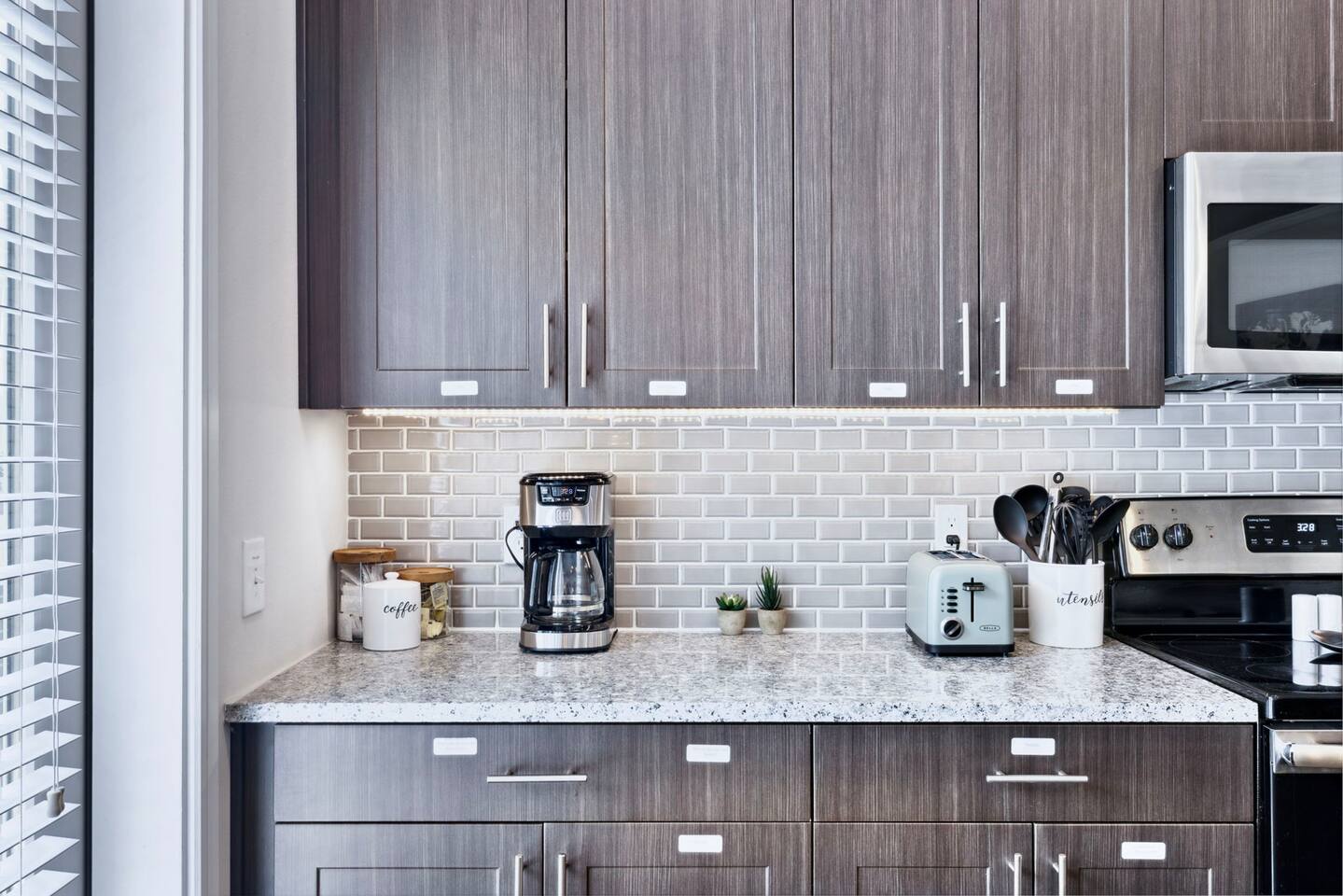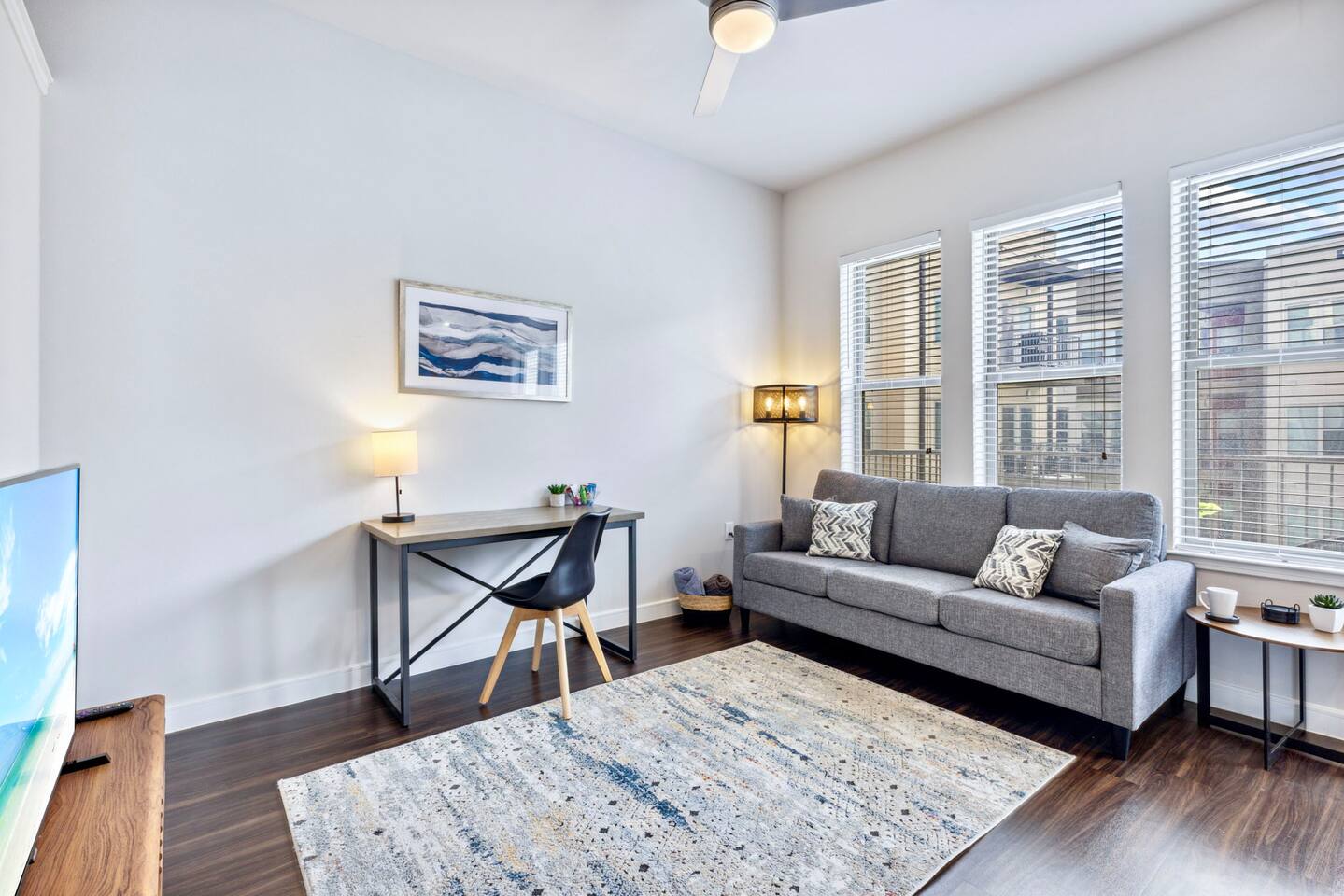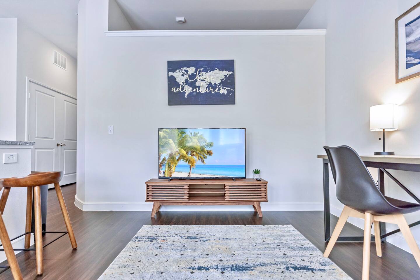 ✦Work remotely with Fast WiFi and a dedicated workspace ✦Smart Lock on Door for Self check in ✦ Enjoy a fully equipped kitchen: plates, bowls, cups, utensils, cooking utensils, pots and pans, baking pans, etc. ✦Coffee maker ✦ Full size refrigerator ✦ Microwave ✦✦Electric Oven/Cooktop ✦ ✦All cutlery, drinkware, cookware and utensils provided ✦ ✦50" Smart TV in the living room & bedroom all you need to do is log in your favorite streaming service. ✦✦Elevators in the building ✦ Cleaned & Sanitized to Airbnb & CDC Guidelines after every guest Contactless check in for your ease and safety, but our dedicated team is local and available to answer any questions or handle any issues.