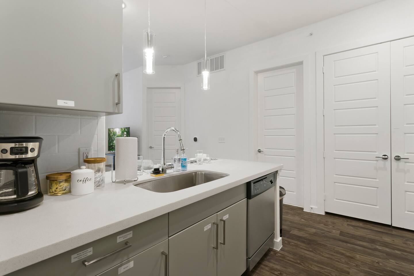 ✦Work remotely with fast WiFi and a dedicated workspace ✦Keyless, no contact entry for your safety ✦Cleaned & Sanitized to Airbnb & CDC Guidelines after every guest ✦Enjoy a fully equipped kitchen: plates, bowls, cups, utensils, cooking utensils, pots and pans, baking pans, etc. ✦ Coffee maker ✦ Full size refrigerator ✦ Microwave ✦Electric Oven/Cooktop ✦ All cutlery, drink ware, cookware and utensils provided ✦ 50" Smart TV in living room & bedroom all you need to do is log in your favorite streaming service. ✦Elevators in the building Contactless check in for your ease and safety, but our dedicated team is local and available to answer any questions or handle any issues.