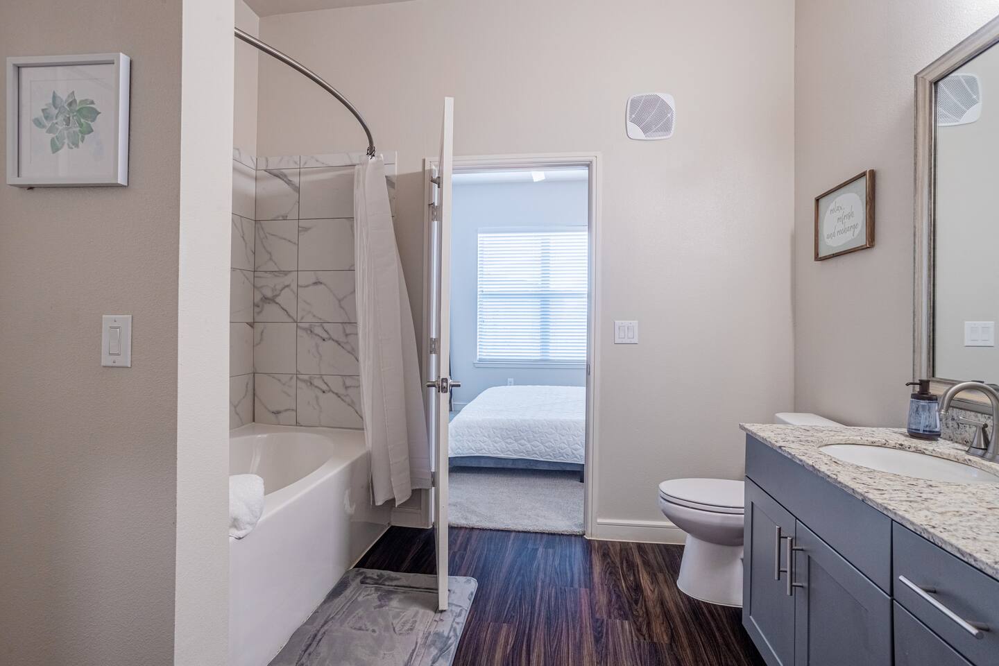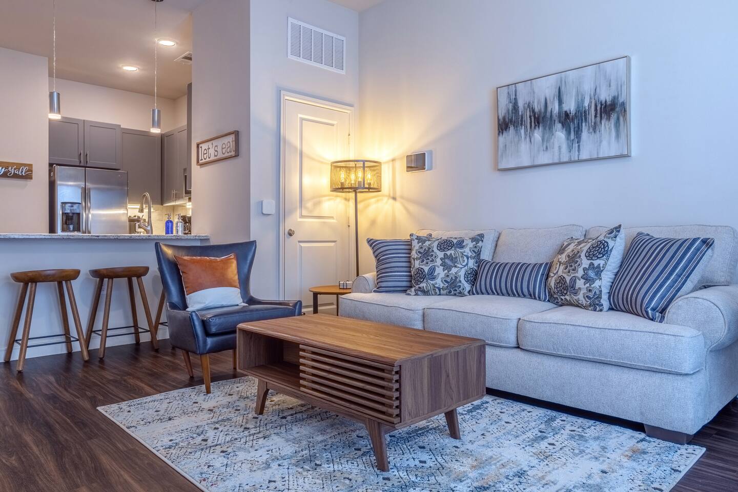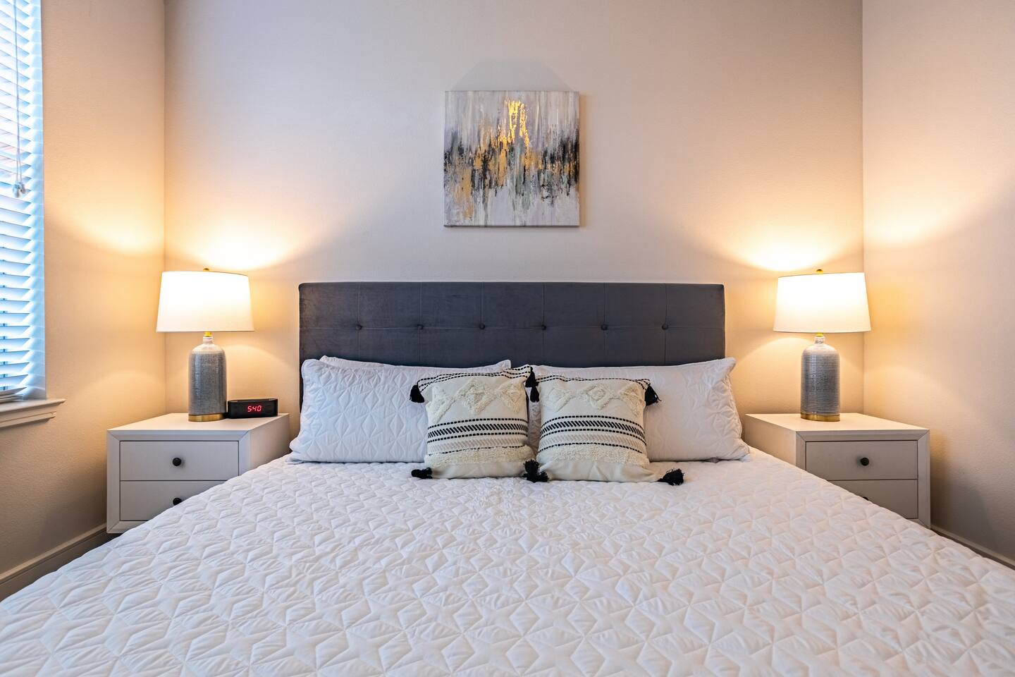 ✦ Perfect for business and medical professionals traveling for work or anyone traveling for a change of scenery. ✦Work Remotely with Fast WiFi and a Dedicated workspace ✦Keyless, no contact entry for your safety ✦ Cleaned & Sanitized to Airbnb & CDC Guidelines after every guest ✦ Enjoy a Fully equipped kitchen: ✦ Coffee maker ✦ Full size refrigerator ✦ Microwave ✦Electric Oven/Cooktop ✦ All cutlery, drink ware, cookware and utensils provided ✦ 50" Smart TV in living room all you need to do is log in your favorite streaming service. ✦ Free Parking is available. Access to our unit requires climbing some stairs. Contactless check in for your ease and safety, but our dedicated team is local and available to answer any questions or handle any issues. COVID cleaning standards and contactless check in will make your experience seamless and give you peace of mind as you travel. Located in the heart of Richardson and minutes away from major interstates to connect you to anywhere you need to travel in the DFW area. We're also walking distance from delicious restaurants, Whole Foods, a beautiful nature trail and the popular CityLine area.