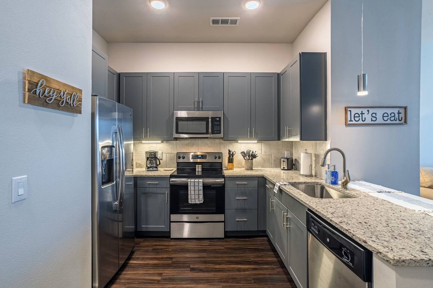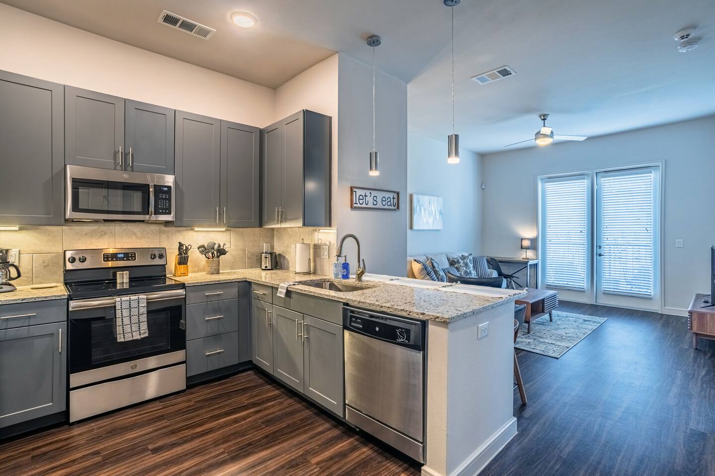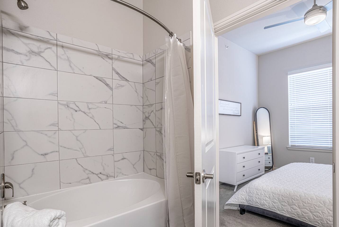 ✦ Perfect for business and medical professionals traveling for work or anyone traveling for a change of scenery. ✦Work Remotely with Fast WiFi and a Dedicated workspace ✦Keyless, no contact entry for your safety ✦ Cleaned & Sanitized to Airbnb & CDC Guidelines after every guest ✦ Enjoy a Fully equipped kitchen: ✦ Coffee maker ✦ Full size refrigerator ✦ Microwave ✦Electric Oven/Cooktop ✦ All cutlery, drink ware, cookware and utensils provided ✦ 50" Smart TV in living room all you need to do is log in your favorite streaming service. ✦ Free Parking is available. Access to our unit requires climbing some stairs. Contactless check in for your ease and safety, but our dedicated team is local and available to answer any questions or handle any issues. COVID cleaning standards and contactless check in will make your experience seamless and give you peace of mind as you travel. Located in the heart of Richardson and minutes away from major interstates to connect you to anywhere you need to travel in the DFW area. We're also walking distance from delicious restaurants, Whole Foods, a beautiful nature trail and the popular CityLine area.