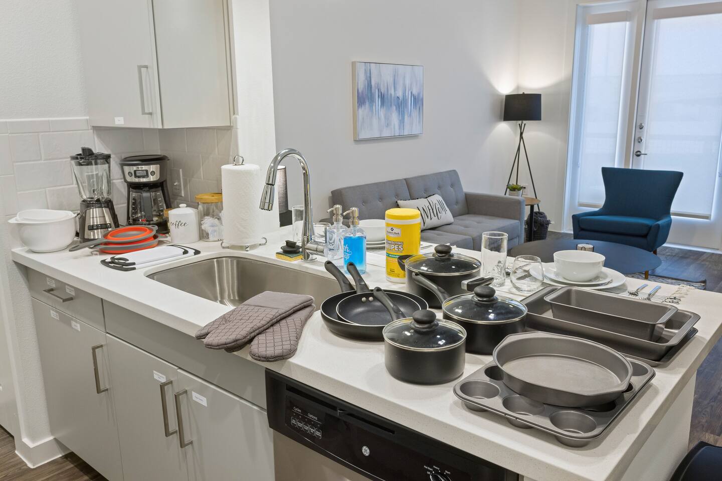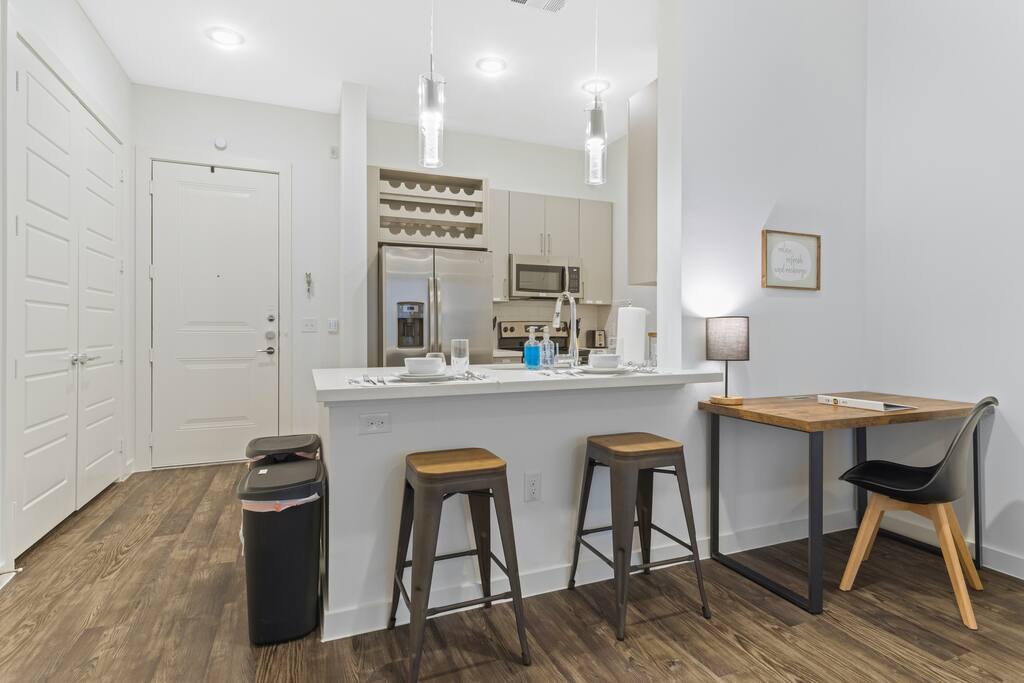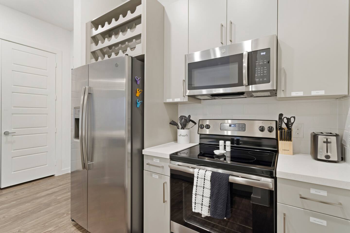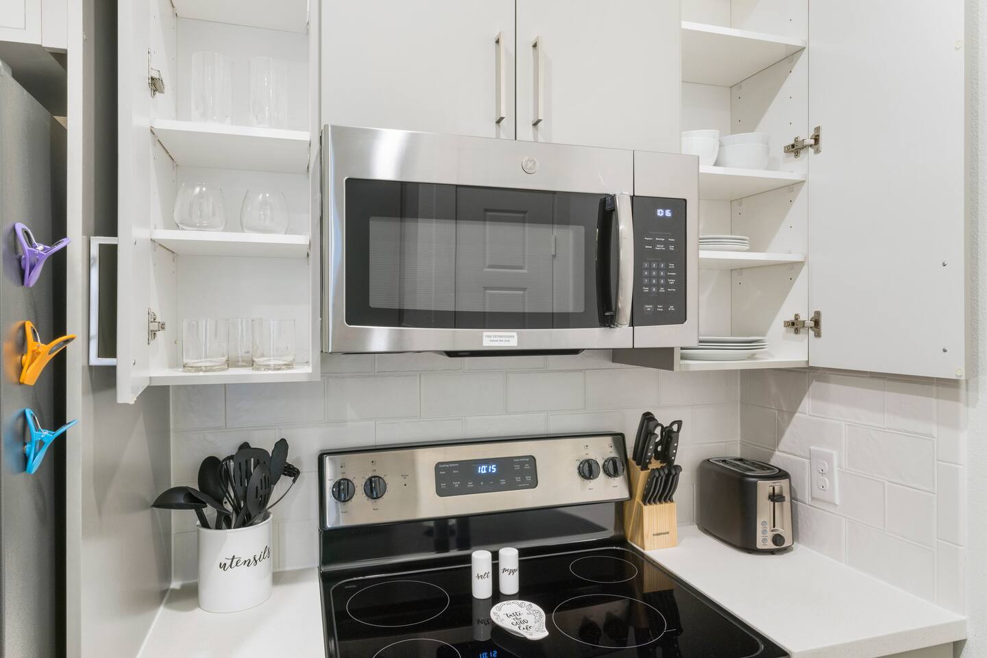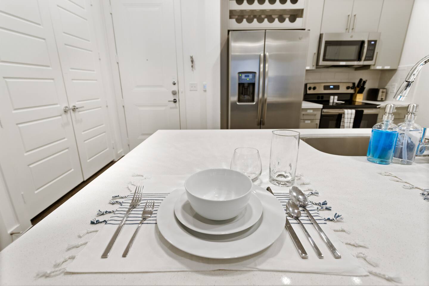 ✦Work remotely with Fast WiFi and a dedicated workspace ✦Keyless, no contact entry for your safety ✦ Enjoy a fully equipped kitchen: plates, bowls, cups, utensils, cooking utensils, pots and pans, baking pans, etc. ✦Coffee maker ✦ Full size refrigerator ✦ Microwave ✦✦Electric Oven/Cooktop ✦ ✦All cutlery, drinkware, cookware and utensils provided ✦ ✦50" Smart TV in the living room & bedroom all you need to do is log in your favorite streaming service. ✦✦Elevators in the building ✦ Cleaned & Sanitized to Airbnb & CDC Guidelines after every guest Contactless check in for your ease and safety, but our dedicated team is local and available to answer any questions or handle any issues.